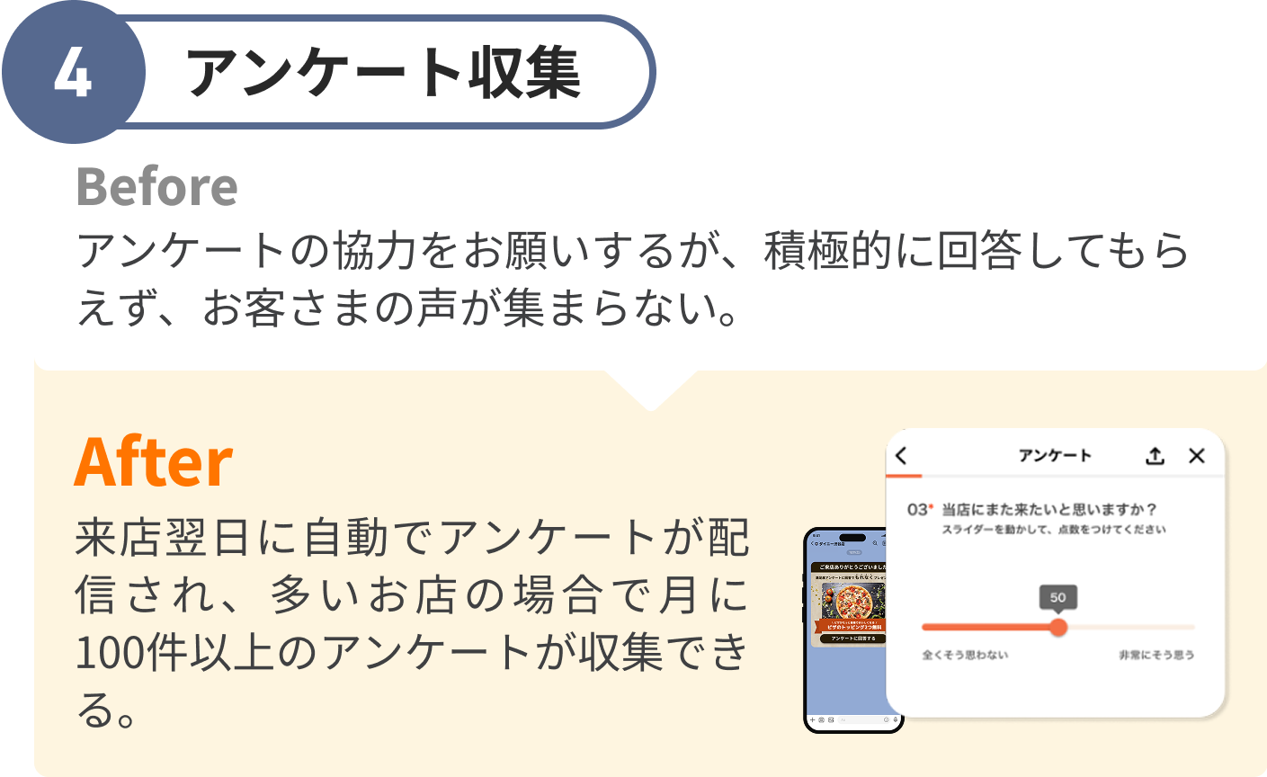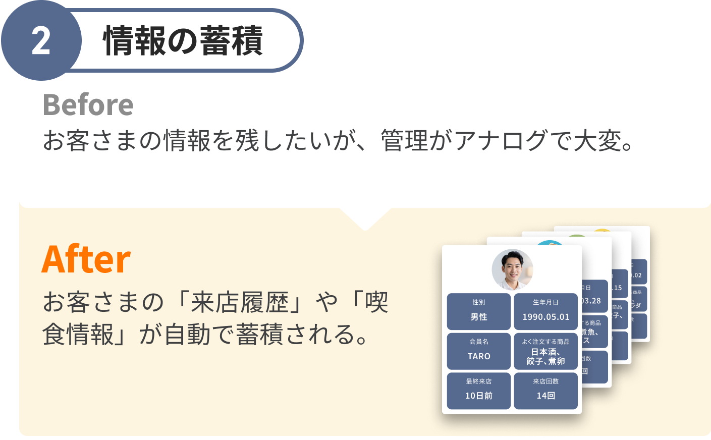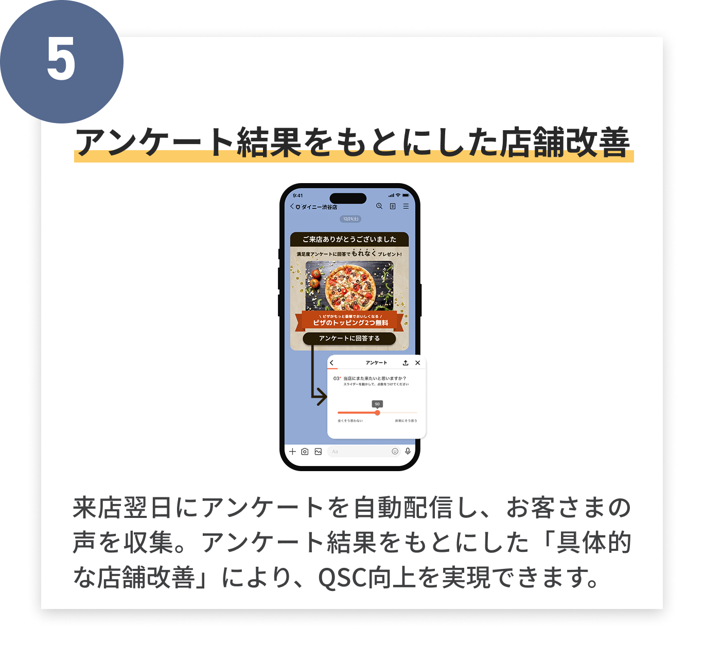 蓄積されたデータを店舗改善に活用することで、 QSCを向上させ、リピーターを増やすことができます!