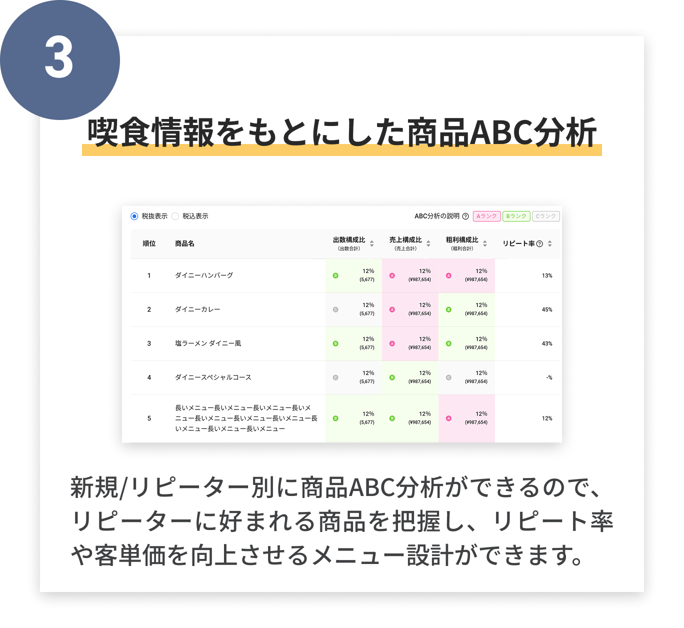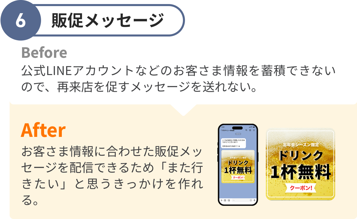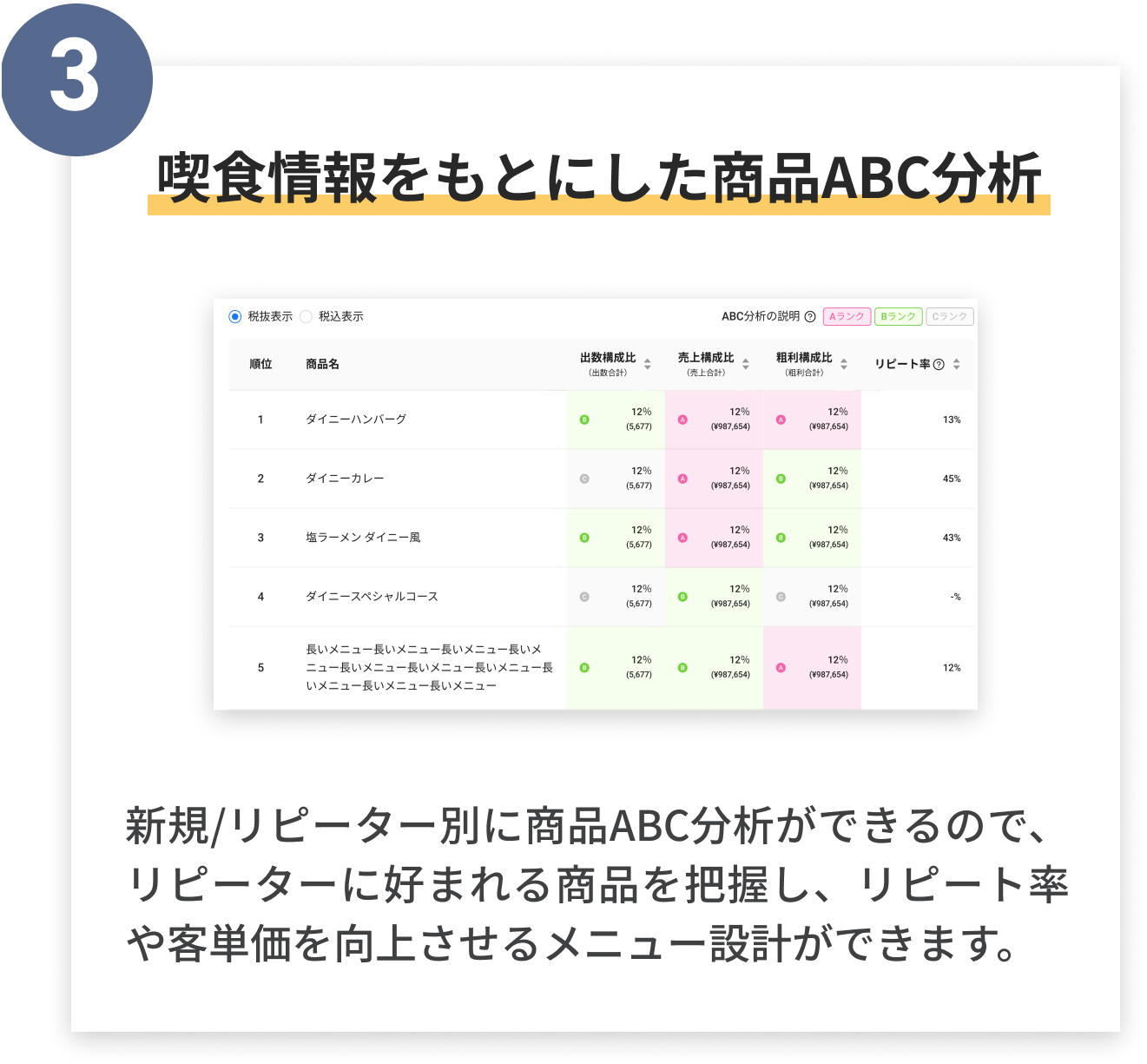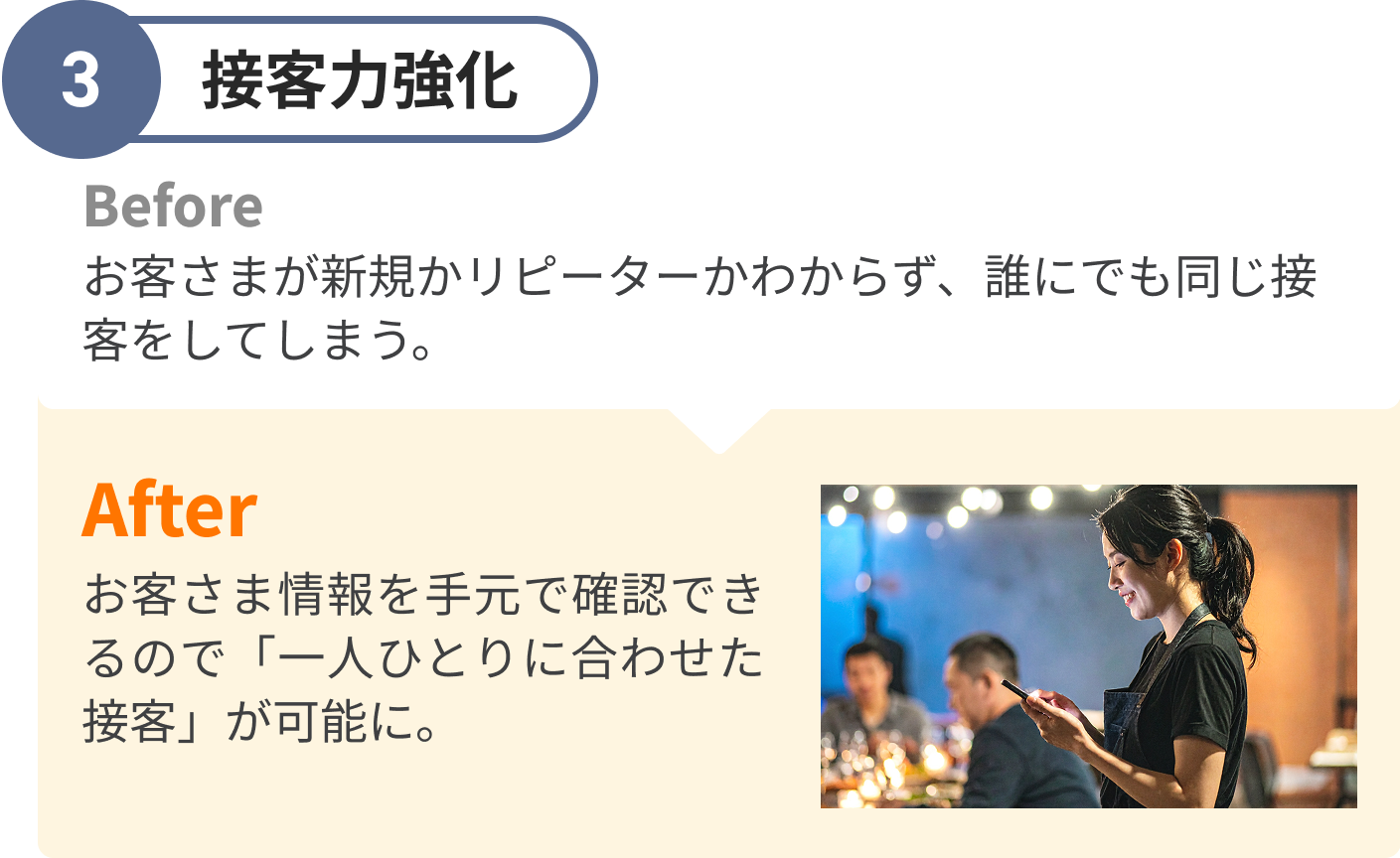 蓄積されたデータを店舗改善に活用することで、 QSCを向上させ、リピーターを増やすことができます!