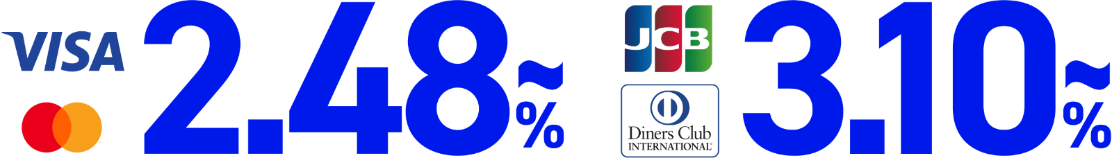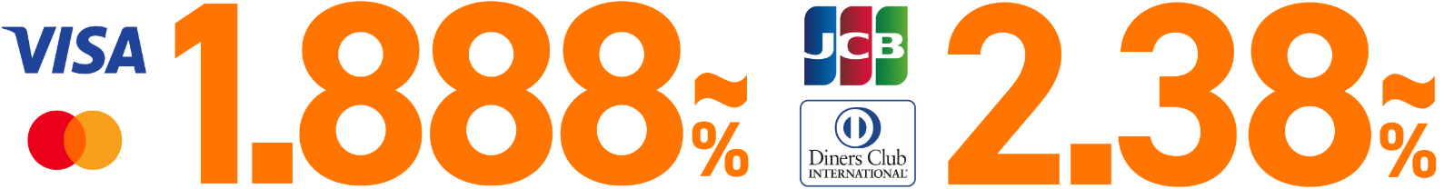 Visa, Mastercardブランドは1.888%〜、JCB, Dinersブランドは2.38%〜にてご提供※。決済手数料の安さがそのまま粗利益につながります。